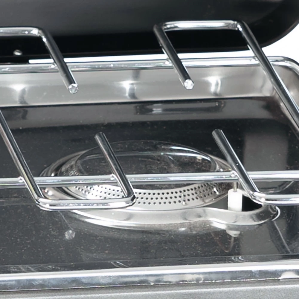 This unit provides you with the control you need to take your sauce from a simmer to boiling point, and the twin burner heads give you space to boil water and fry an egg at the same time. The piezo ignition means that you don’t have to fumble with a lighter or box of matches and the burner is raised off the ground, so the heat won’t build up while you’re cooking and burn the surface it’s sitting on.