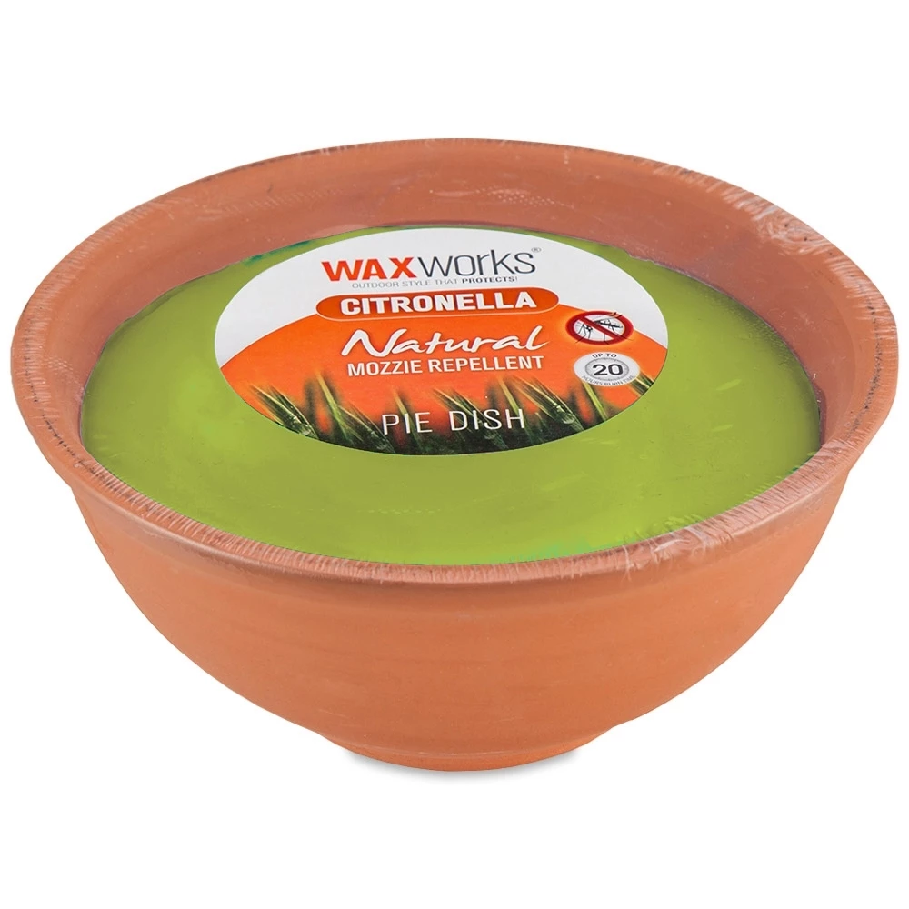- Keep mozzies away while you relax outside, with the Citronella Terracotta Pie Dish Candle from Waxworks.