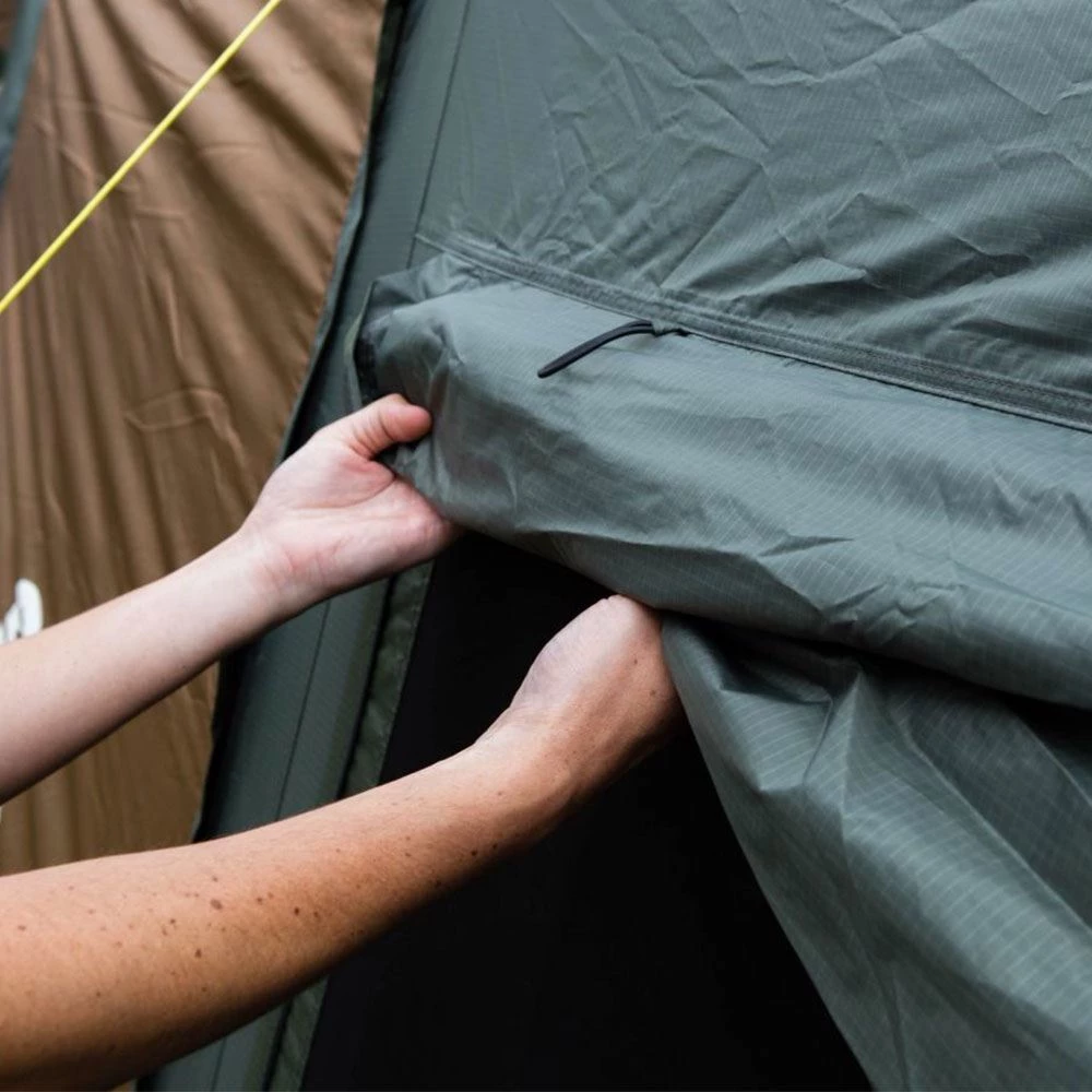 Setting up this tent is easy – simply lay the tent down, spread the fabric out, extend the poles until they lock into place, then throw the fly over, peg it out – and you’re ready to go! The interior features a flexible silicone LED lighting strip, which provides convenient illumination at the flick of a switch. Buy yours here The front features a vestibule which helps add to your living space, and you can also pitch out the two-pole awning for extra shade, plus there’s a second door at the rear that can be extended as an awning. You won’t lose your essentials amongst the rest of your gear as the Instant Up Dark Room Tent features interior organisers and a storage hammock.