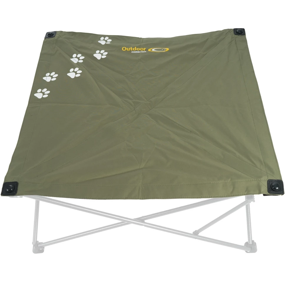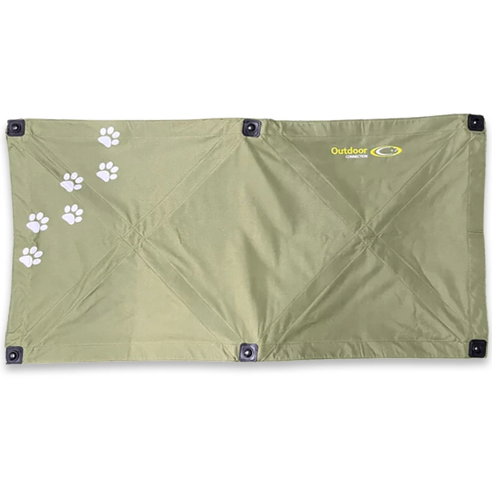 This cover is made from 600D polyester with a PVC coating for durability. It comes in a range of sizes to suit the Outdoor Connection dog beds.