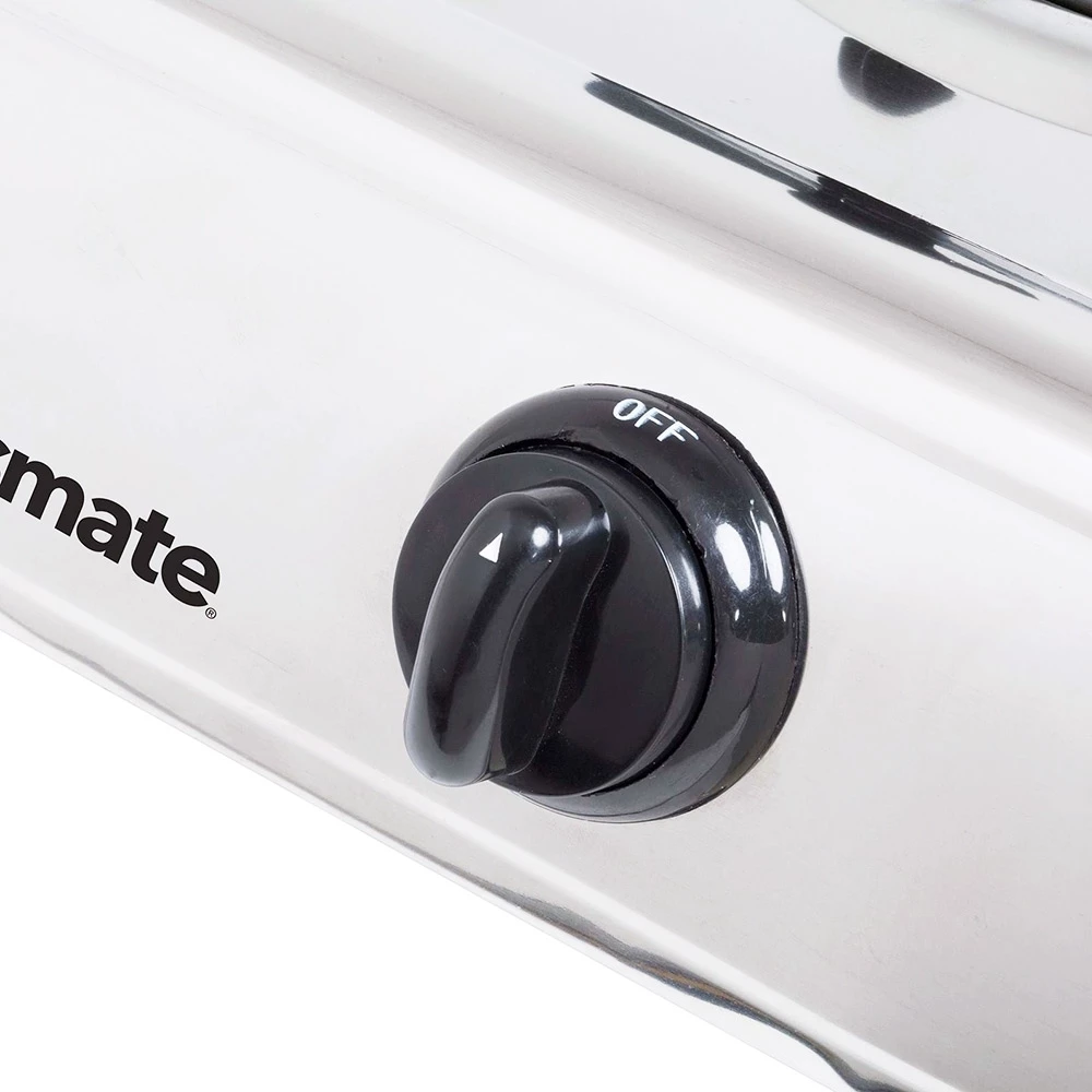 Made to last, this tough cooker is constructed from stainless steel and features cast iron and brass burners with steel caps. It has a powerful heat output of 35,600 BTU but do we hear you say, ‘Yeah righto, sounds impressive but what does that mean?’ Well, let’s break it down. If you’re using a 9kg LPG cylinder and cranking both burners to the max, you’ll get 11 hours of cooking time! A 900mm hose with a regulator is included, it’s got Piezo ignition, and the flame output is fully adjustable to suit your needs.
