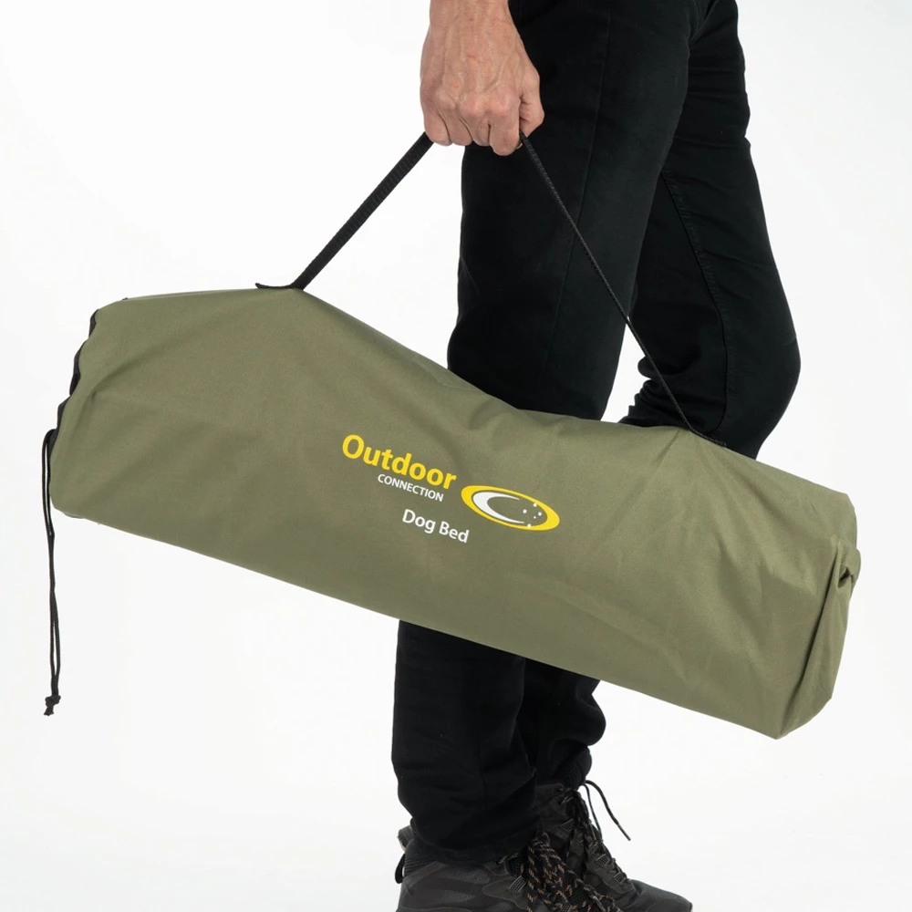 With a sturdy, Hammertone, powder-coated steel frame, this bed bears the rough and tumble of doggy dynamics, with a reinforced cross webbing underneath for support. For the mutts that run amuck, and doggos that nibble and gnaw – the 600D polyester cover with a PVC coating provides durability and is replaceable, should it disintegrate. A compact carry bag also makes for easy transport, from the backyard to the outback.