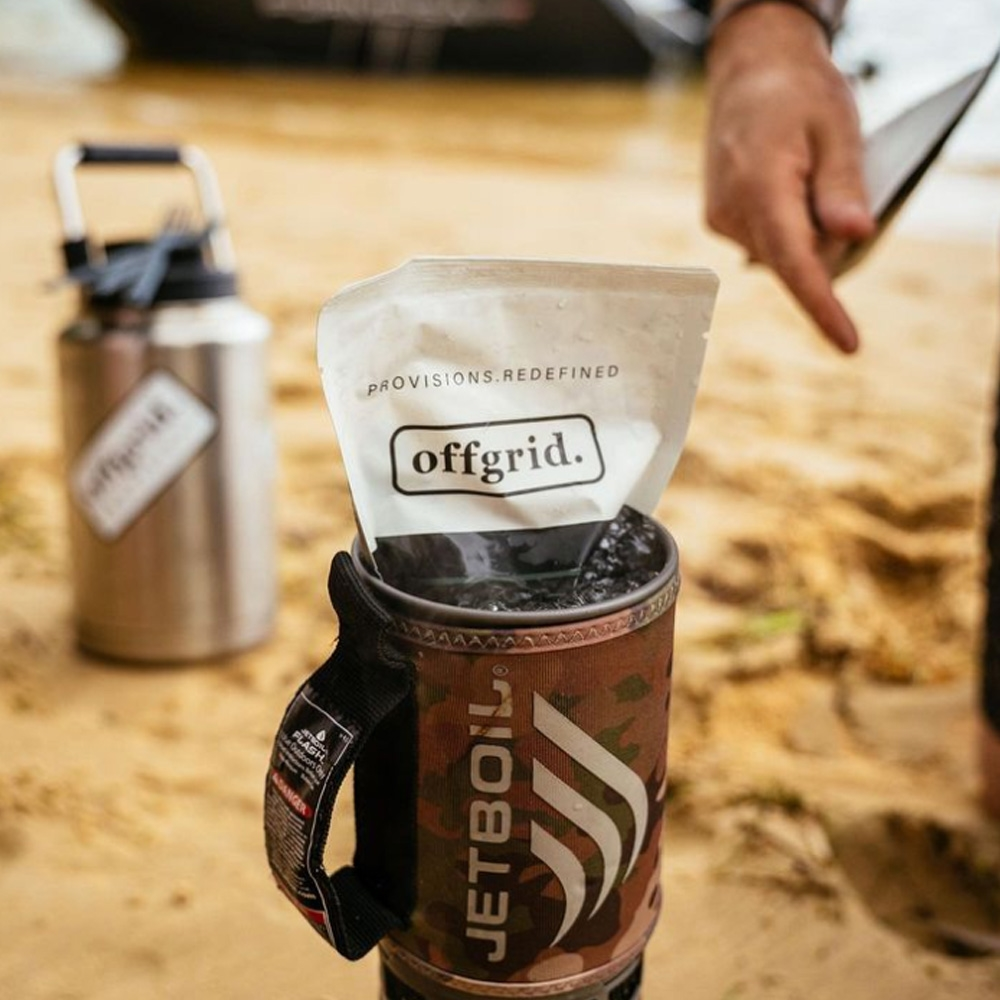 All-natural and designed to heat and eat for convenient campsite cooking – this brown rice has been cooked to optimum consistency and complements all separately available Offgrid shelf-stable meals. Be you crouched at the campfire or behind the kitchen bench – simply drop into boiling water for five minutes, or tear at the top and microwave.