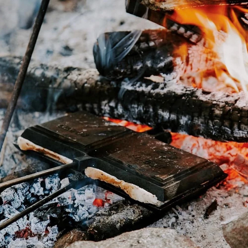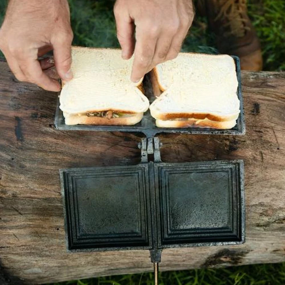 Cook two full-size jaffles at once, crusts and all, with the Jumbo Double Jaffle Iron from Campfire.