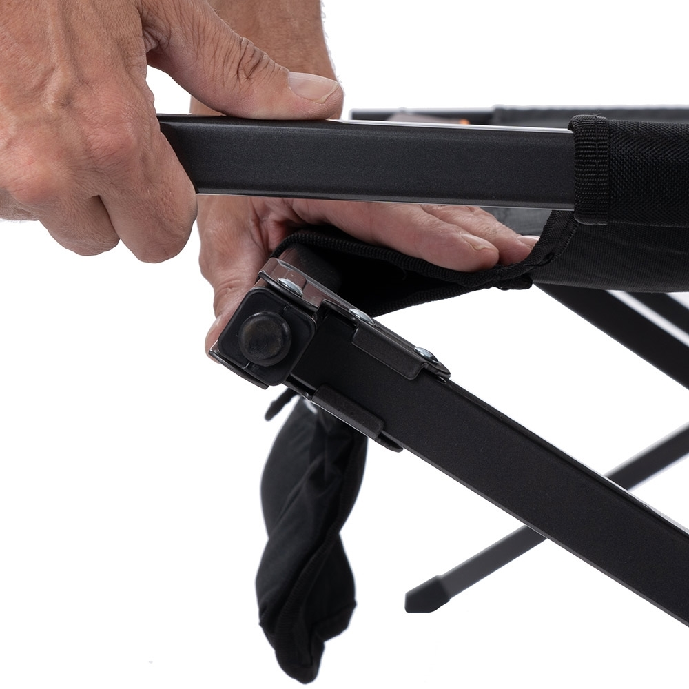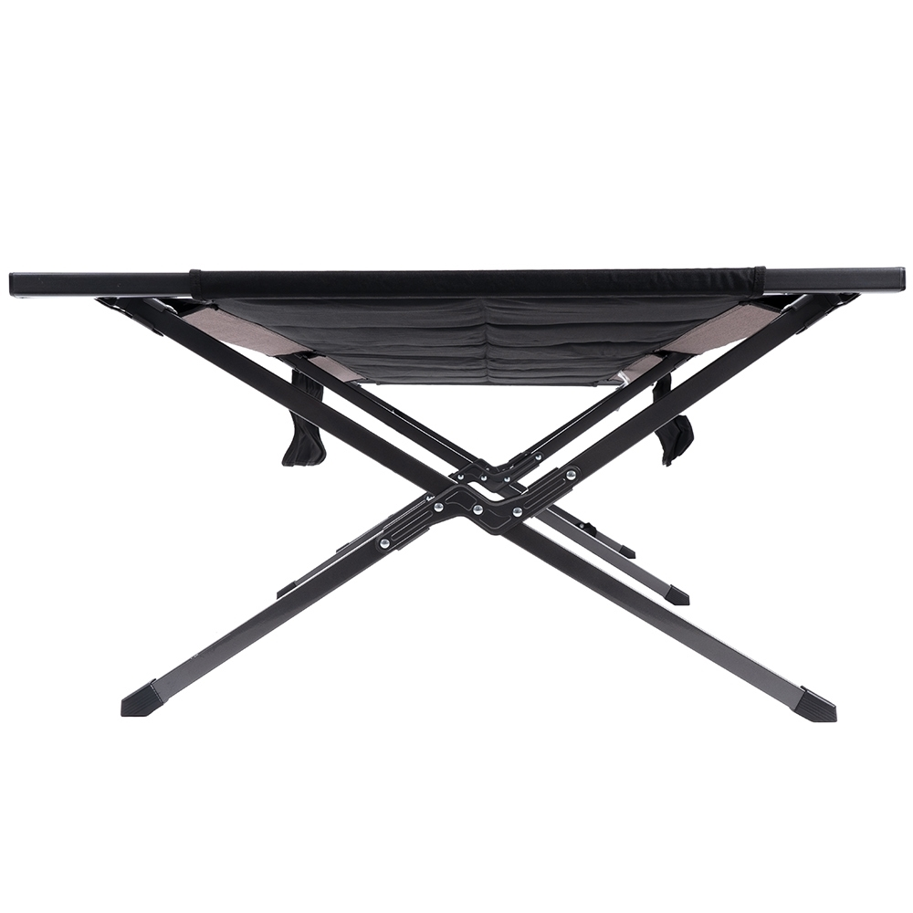 The 92cm width, 150kg weight rating, and steel construction enable plenty of room for ruggedness as you shuffle your way into slumber. With its steel square tubing frame, sturdiness and stability are guaranteed – which means that second helping of pudding is too. Its elegant X-leg design means set-up is swift and pack-down is compact, allowing you to be settled with a snag by sundown.