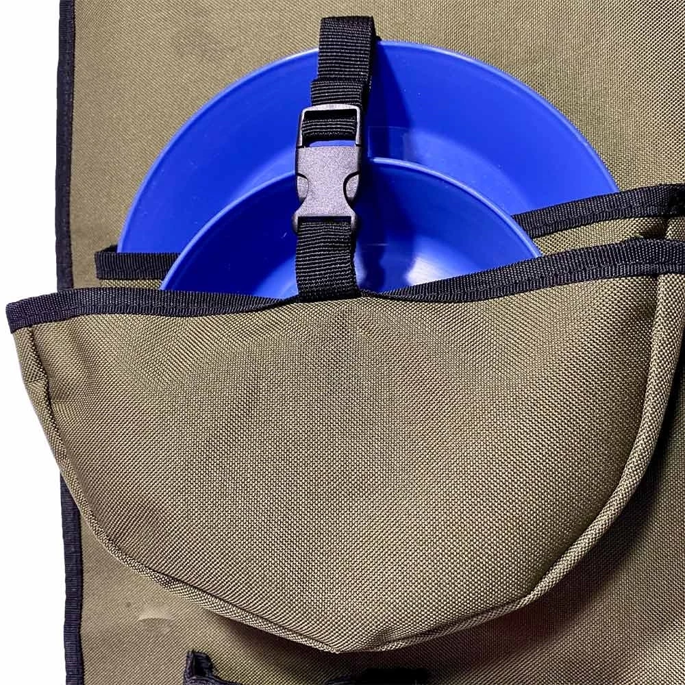 - Separate cutlery holder 14 pockets & 2 knife holders which stow in the main pocket