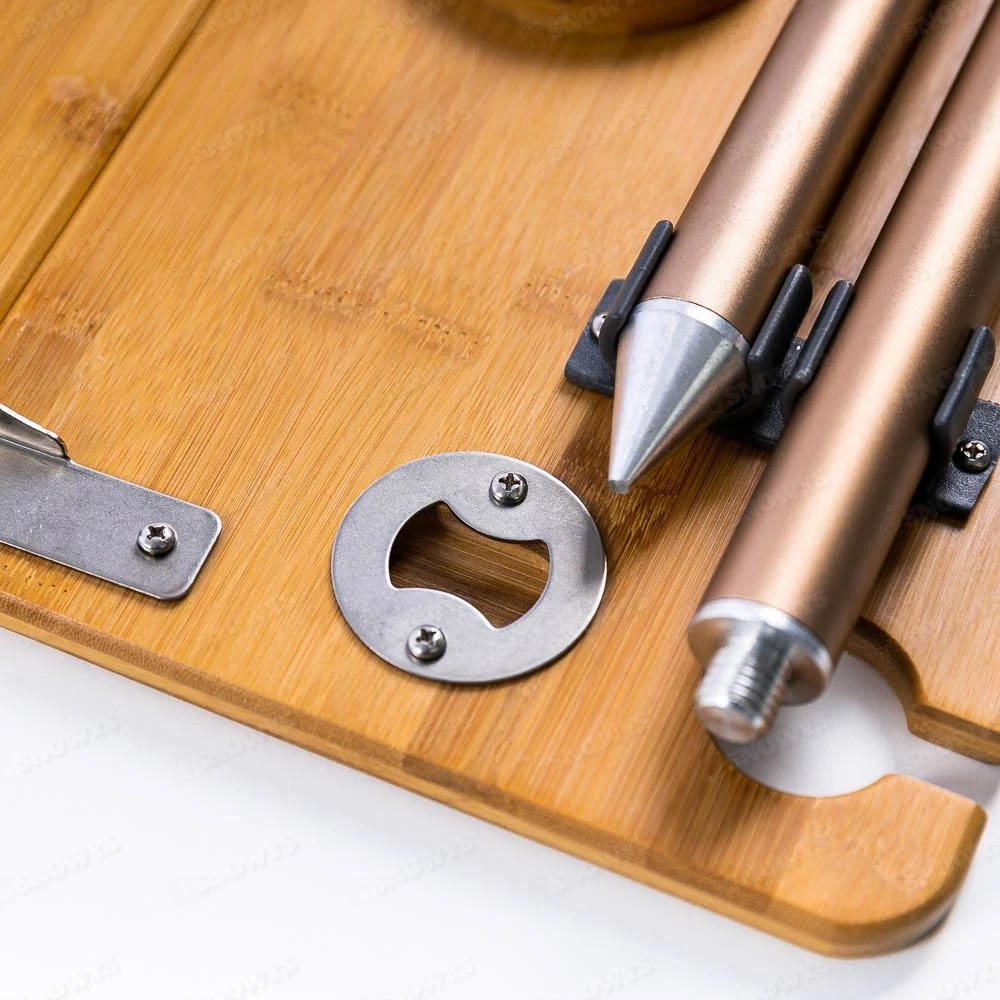 Just drive this table into the ground or sand, and then you can rest your nibbles and drinks on the top! It’s got a sleek natural bamboo surface and features a 2 stage aluminium frame design which allows you to use it low when sitting on the ground or higher up if you’re kicking back in your camp chair. With four wine glass holders to hold your pinot, plus a bottle opener for cracking open some frothies – you’re all set to truly relax and unwind.