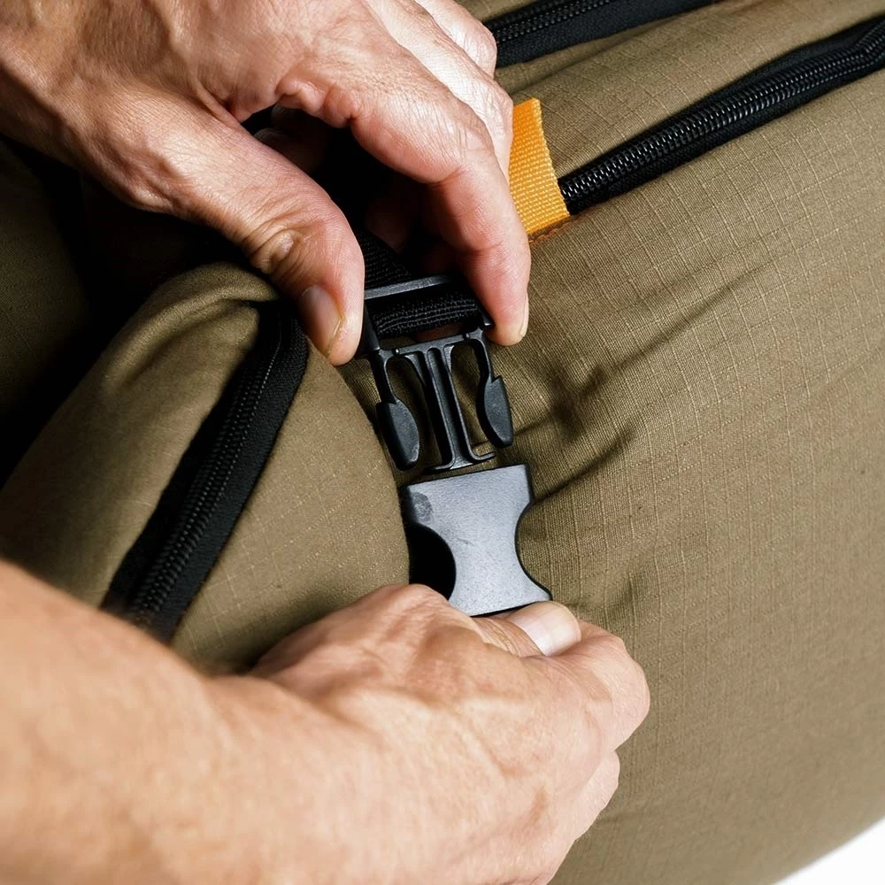 This sleeping bag features a comfort rating of 3°C, and a lower limit of -3°C, thanks to the two layers of T-Therm polyester fibres. The ripstop canvas shell provides unprecedented durability, and the contoured hood helps trap warmth inside the bag. It’s got a zip connect feature which allows two bags to be joined together to form a double, the inner storage pocket allows you to stash valuables safely, and the fleece liner can be removed for use as a summer weight bag.