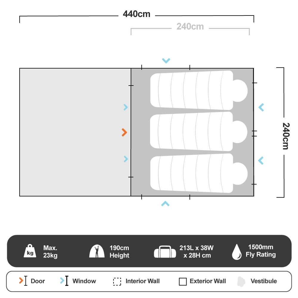 - Includes 2 x 1.9m awning poles, pegs, guy ropes and heavy duty carry bag