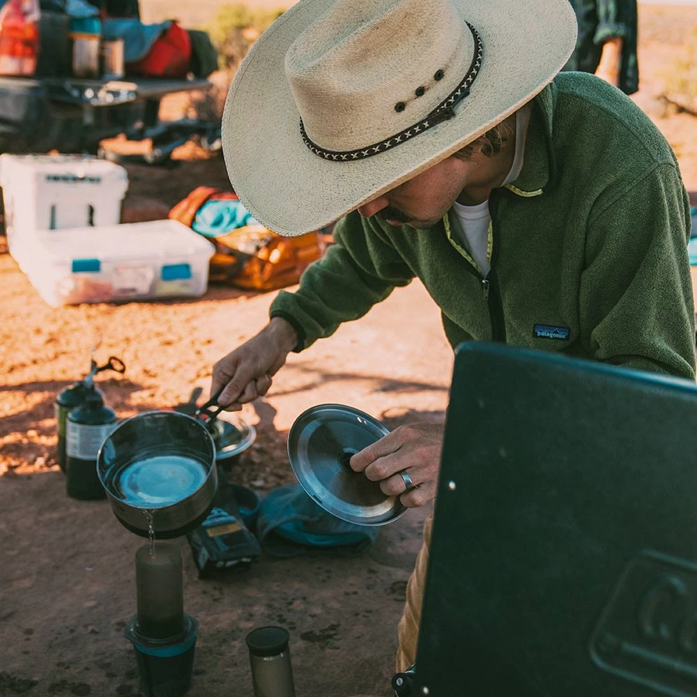 For travelling duos – the strong, lightweight, and easy-to-clean Sigma Cook Set 2.1 has you covered for campsite cooking.