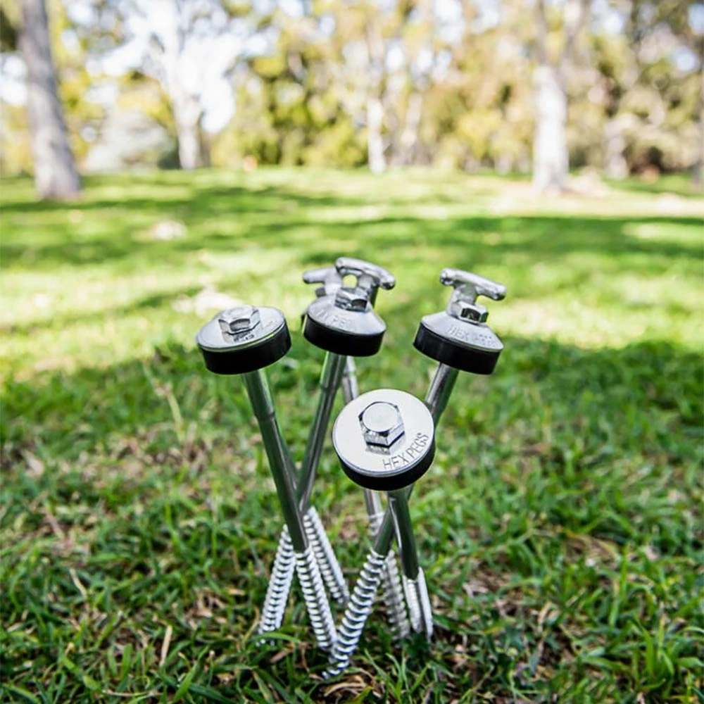 If the longer version is a bit of overkill for your needs but you still want to save time and energy when setting or packing up your camp, then Hex Peg’s Short Hook Top Pegs are the answer.