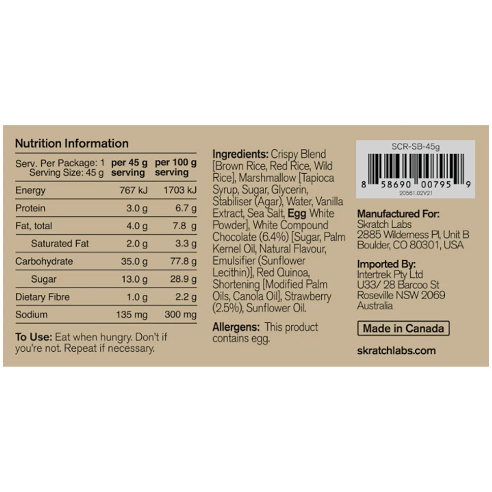Enjoy chewy, gooey goodness with the Skratch Labs Crispy Strawberry & Mallow Rice Cake.