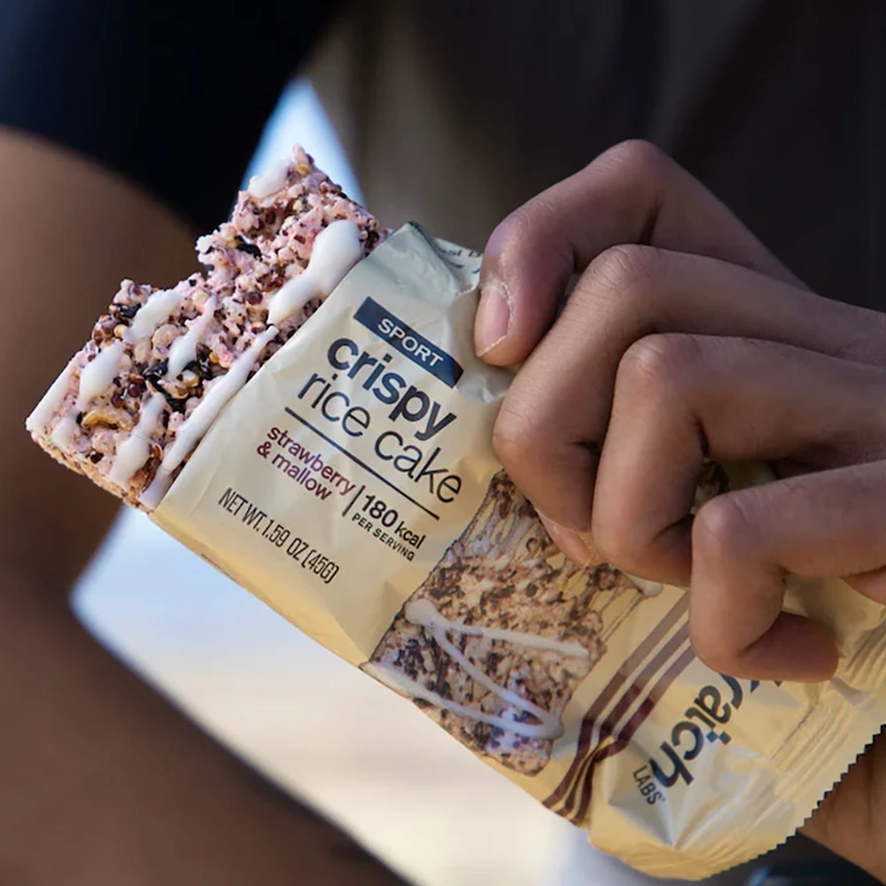 For a crispy treat that will fuel your feet, try the Skratch Labs Crispy Rice Cake Strawberry & Mallow!