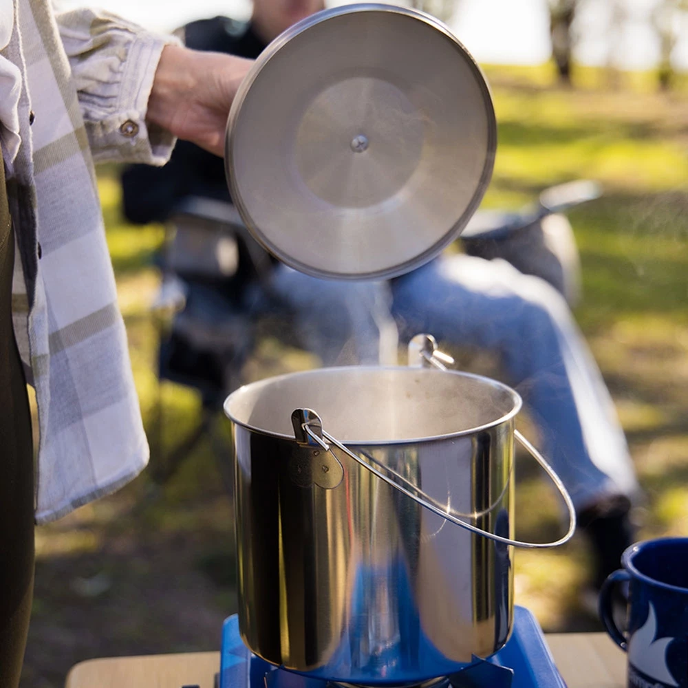 The Campfire Stainless Steel Billy 2.8L is campsite warmth cupped in the palms of your hands.