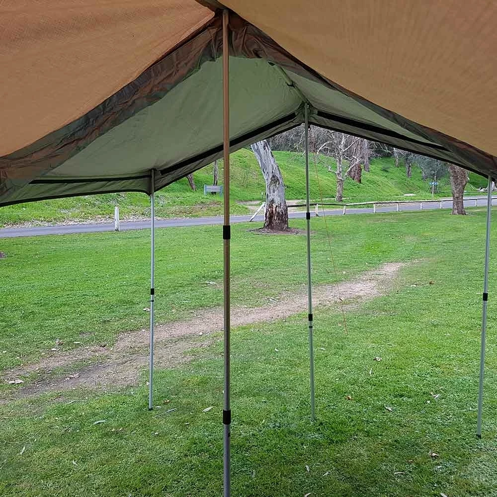 Made of heavy-duty ripstop poly/cotton, the Turbo 240 Extenda Awning is compatible with your existing front and side panels, creating another level of versatility to your Turbo 240 setup.
