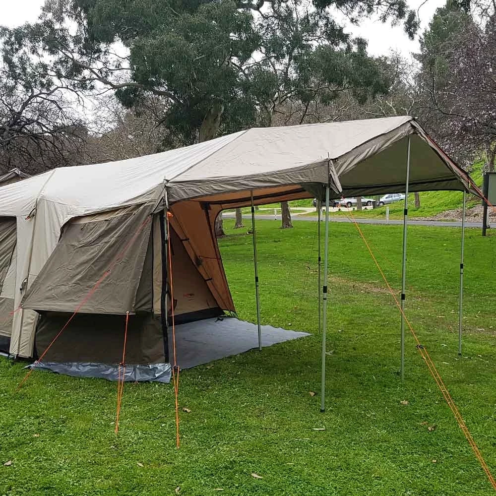 - Includes 3 awning poles, ridge pole, pegs and storage bag