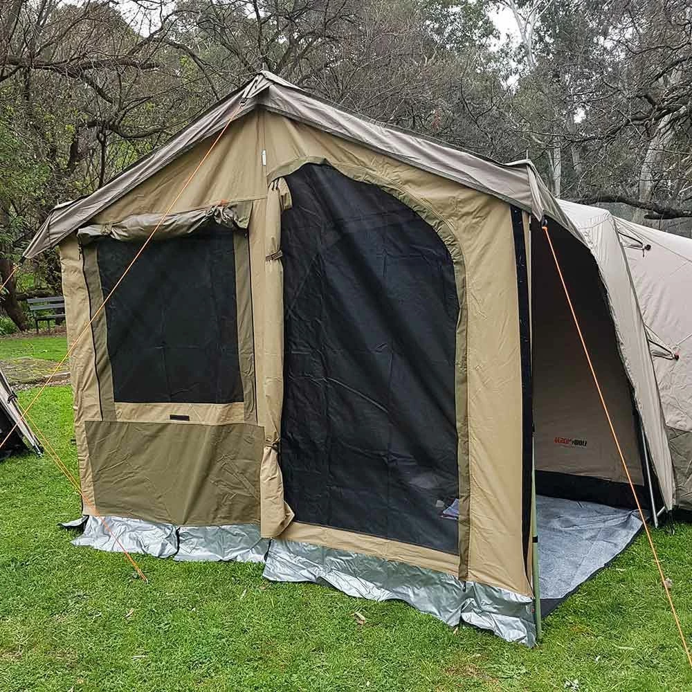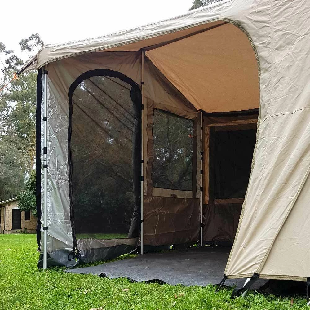 All you’ll need are two side panels, and you’ll have a nice sectioned-off area to relax in away from the elements. Made from durable and breathable canvas, this front panel also now features a gusseted window and a mesh door which is perfect for adding airflow and making it easy to access. It’s also got a PVC storm flap at the bottom to help keep water out from under the awning.