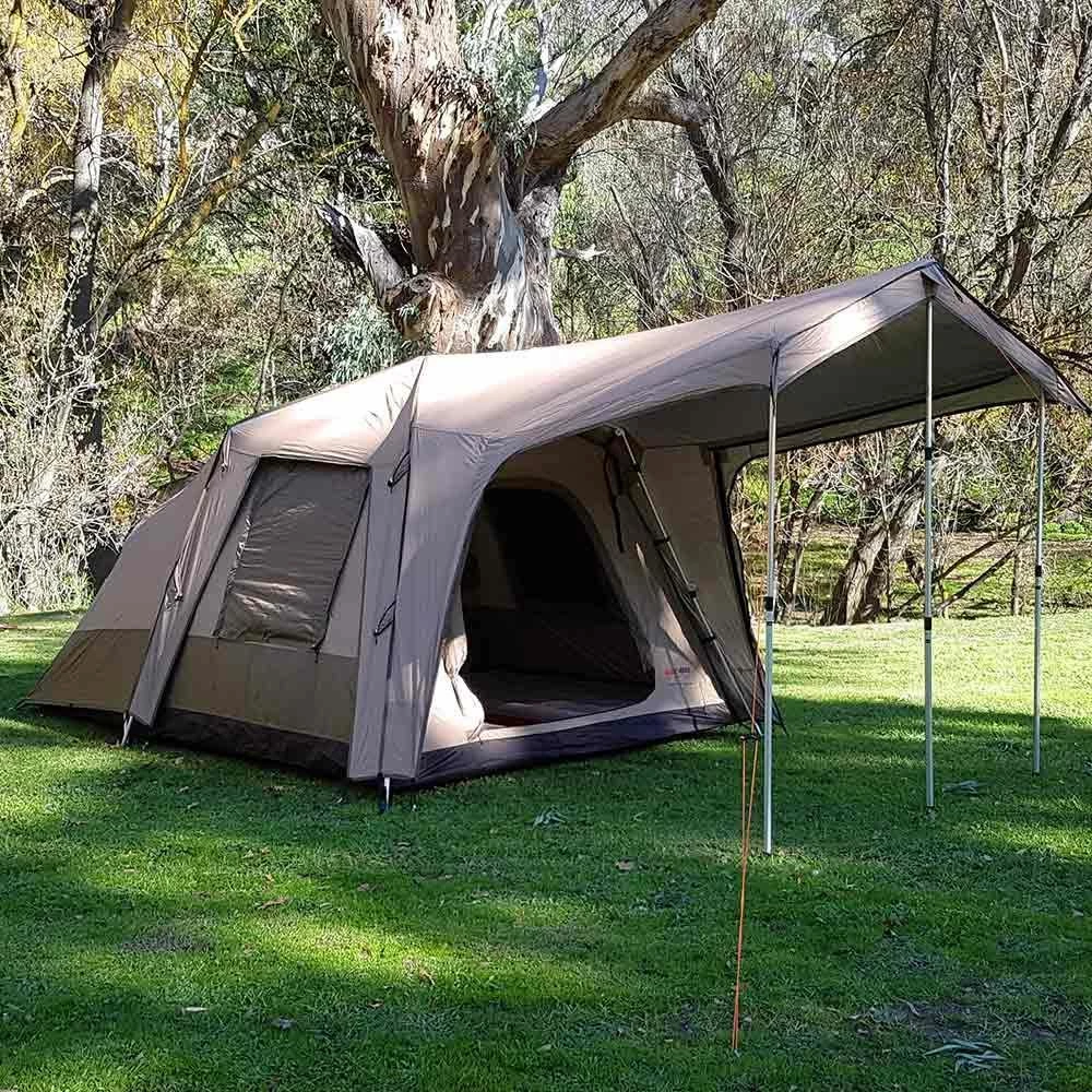 The three-pole awning can be turned into an extended living area with optional panels, or it can be sectioned off with an optional screen room for a fully enclosed space. The PVC storm flaps at the bottom of the optional front and side panels will help keep your awning dry in wet weather, and the zips and Velcro on the panels attach to the fly to allow for tape sealing for added water protection.