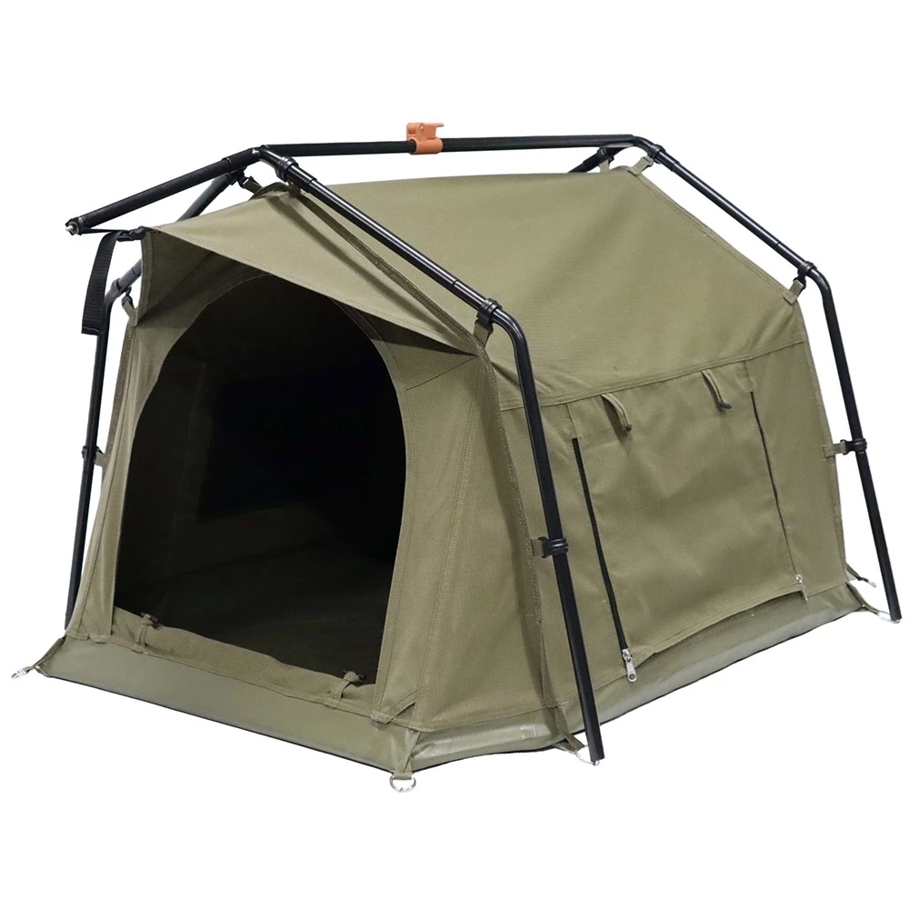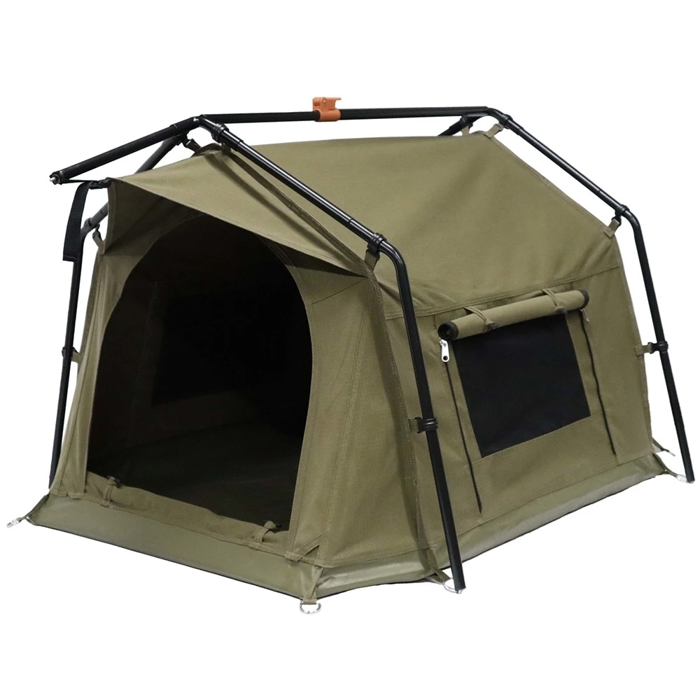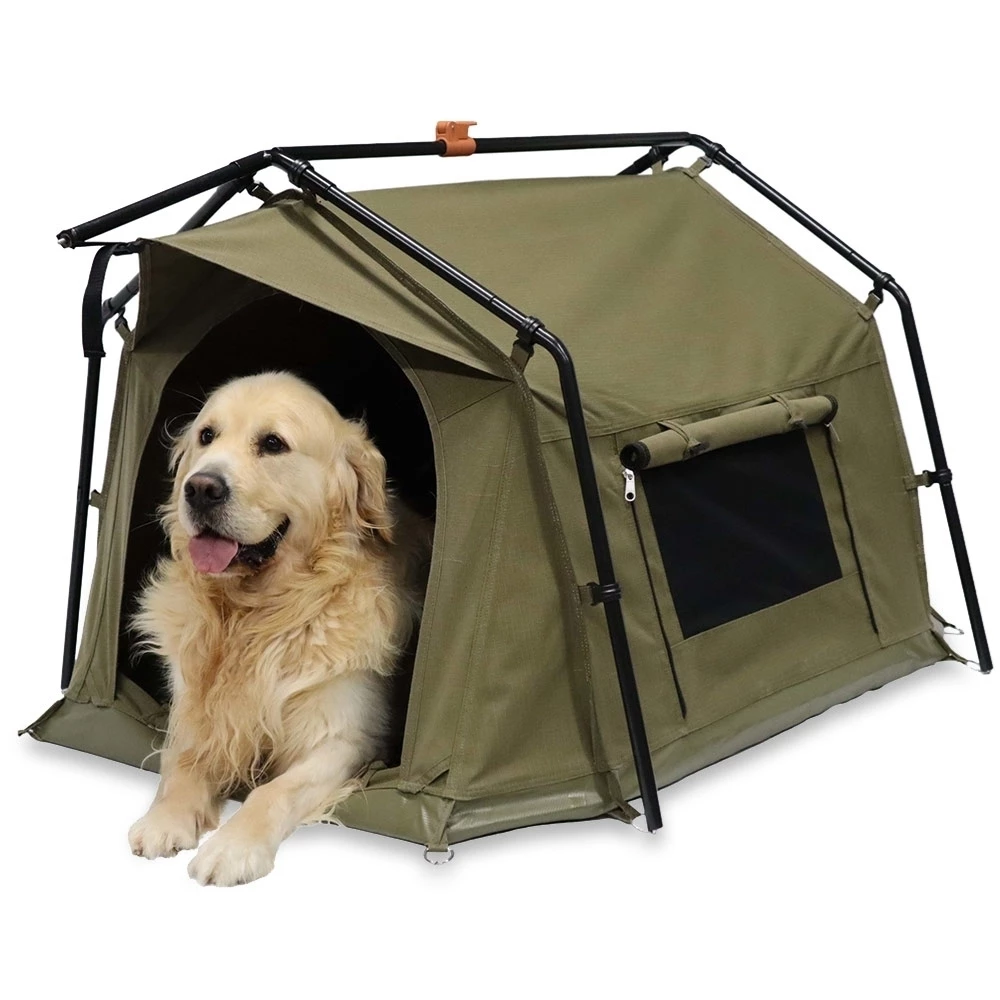 Owed to a large arched entry for easy access and panels of 320gsm proofed plain weave poly-cotton canvas β this den withstands the rough and tumble of doggy dynamics while allowing privacy from pup-arazzi. Thanks to PVC-coated poly super-fine zippered insect mesh β avoid the hotdogs and appreciate adequate ventilation in claggy climates.